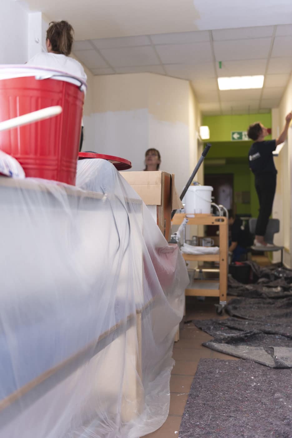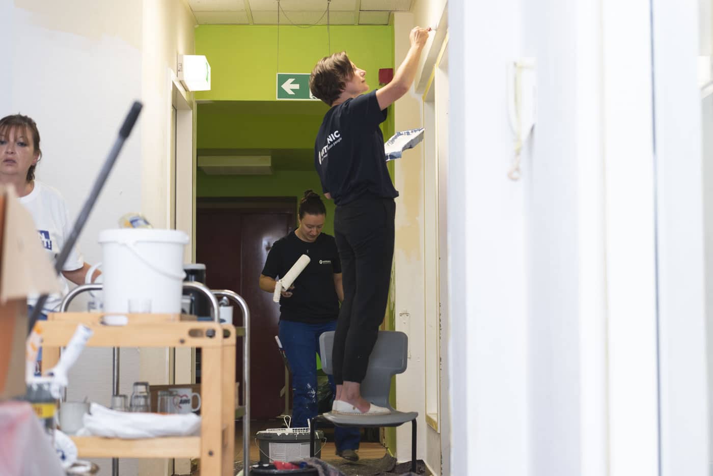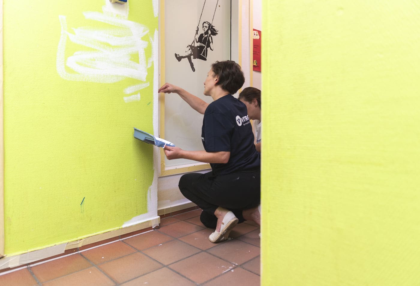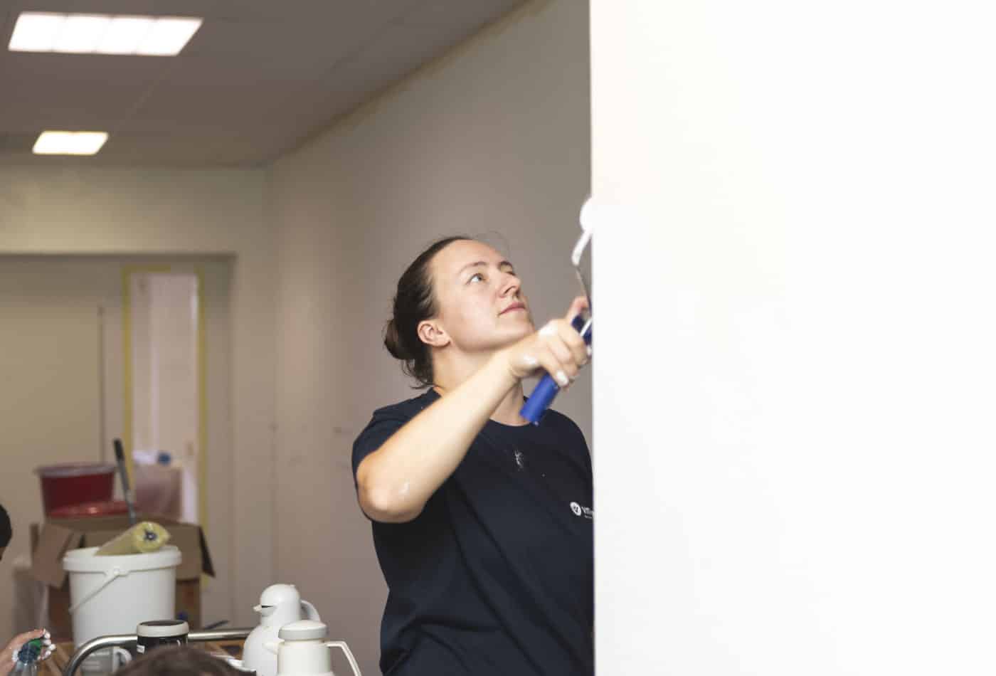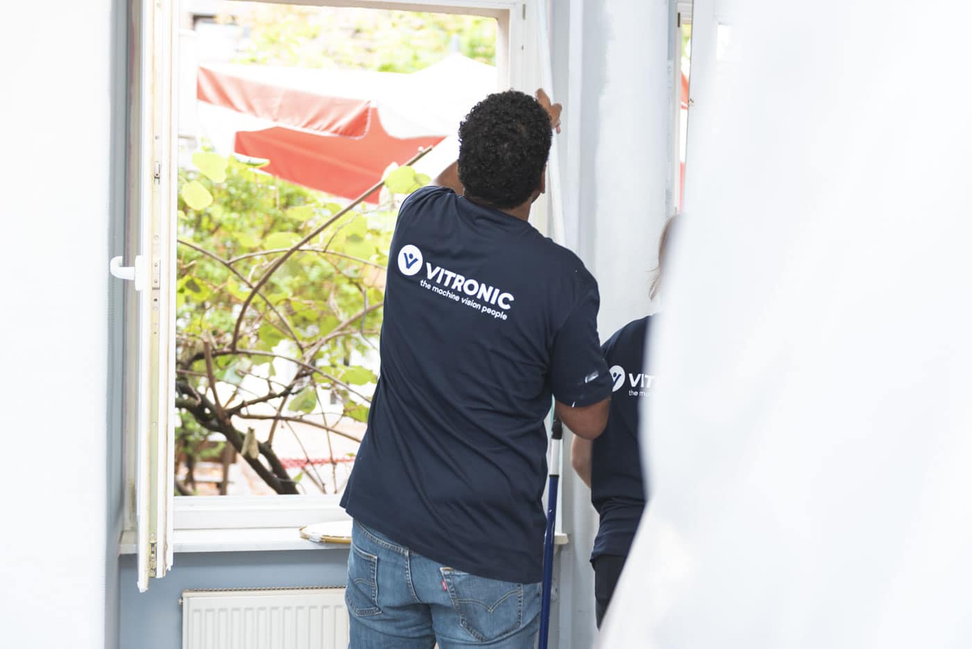 10 Mitarbeitende der Vitronic wurden freigestellt und strichen drei Horträume – mit Teamgeist und voller Motivation und prima Ergebnissen. Jetzt können sich die Kinder dort wieder wohl fühlen. Auch unterstützte das Unternehmen bei der Materialbeschaffung.
