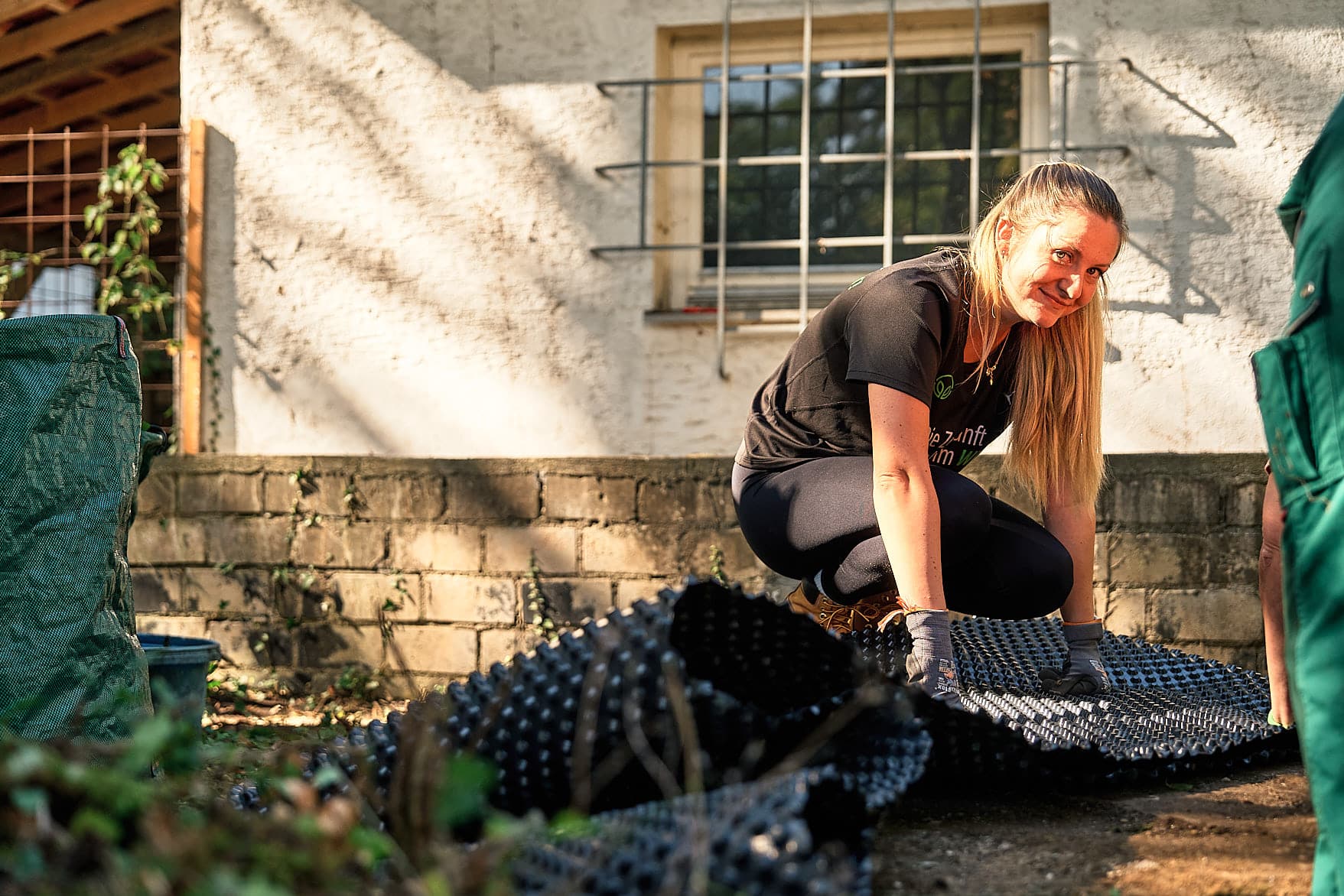 Im ersten Gartenbereich wurde kräftig angepackt: Gestrüpp entfernt, eine alte Sitzmauer freigelegt und die Fläche mit frischem Mulch versehen. So entstand ein neuer Aufenthaltsbereich mit einer Beerennaschecke, die bald mit Himbeeren und Johannisbeeren zum Verweilen einlädt. Die Erde wurde mit Kompost aufgewertet – ein nachhaltiger Beitrag für gesundes Pflanzenwachstum und ein fruchtbares Miteinander.