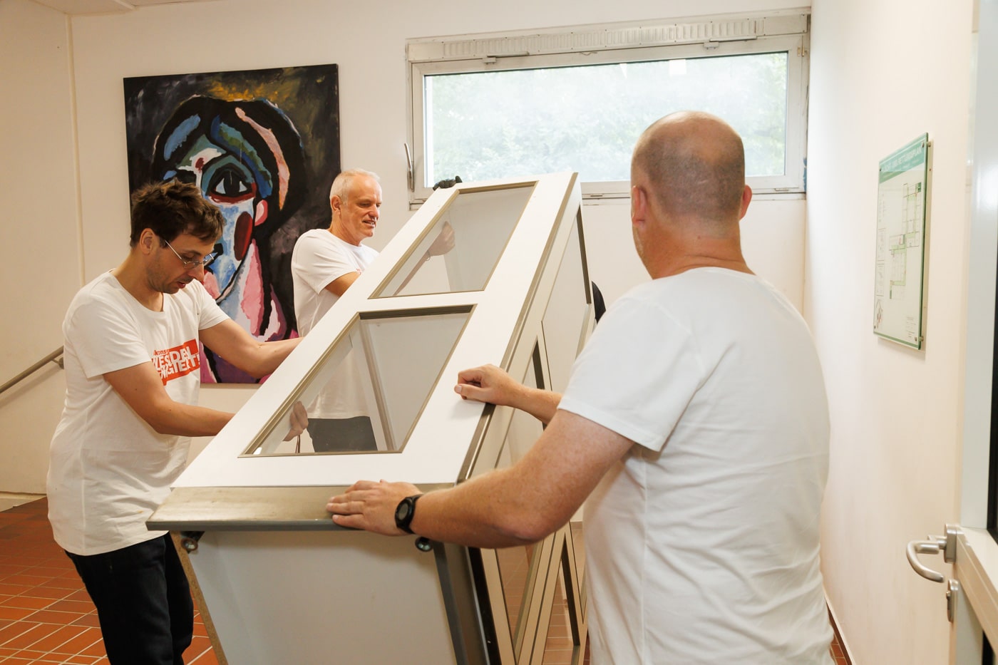 An dem Tag wurde ein Lichthof gesäubert und so vorbereitet, dass dieser begrünt werden kann. Dafür wurden auch große Planen und Folien ausgelegt. Ebenso wurde eine ehemalige NaWi-Sammlung leergeräumt, die nun als Unterrichtsraum dienen soll.