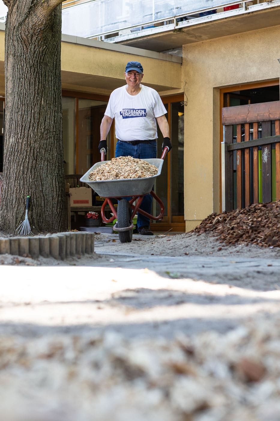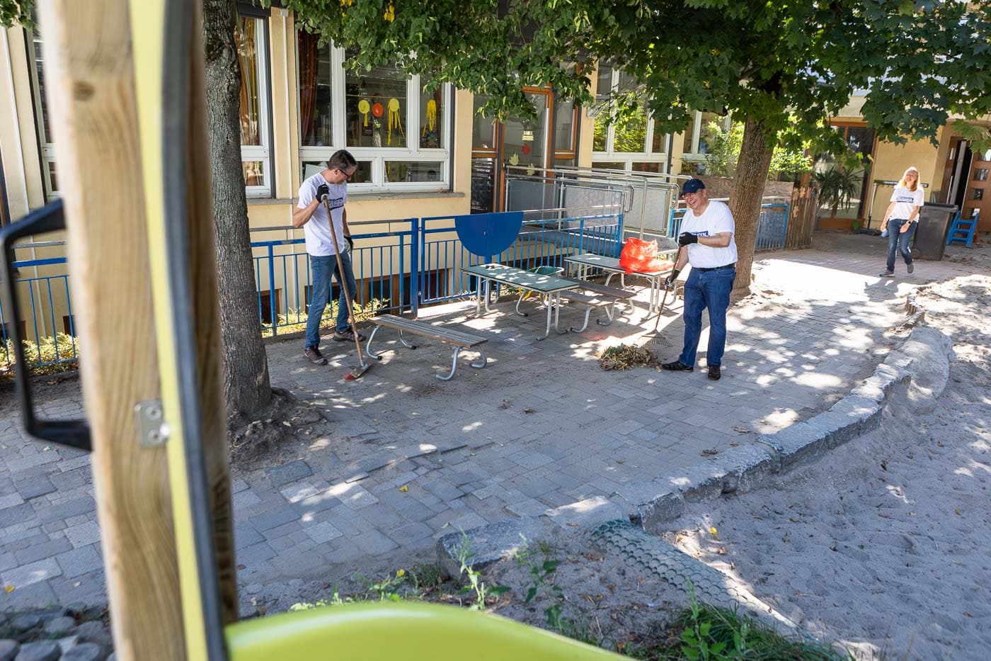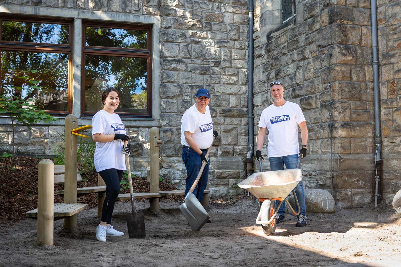 Das Team des Oberbürgermeister-Büros inklusive Oberbürgermeister half mit zahlreichen Schubkarrengängen. Auch die Grünanlagen wurden gepflegt, die Böschung vom Unkraut befreit und neue Bodendecker gepflanzt. Jetzt können die Kinder das Außengelände wieder zum Entspannen und Wohlfühlen nutzen.