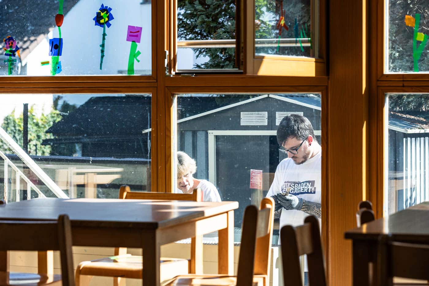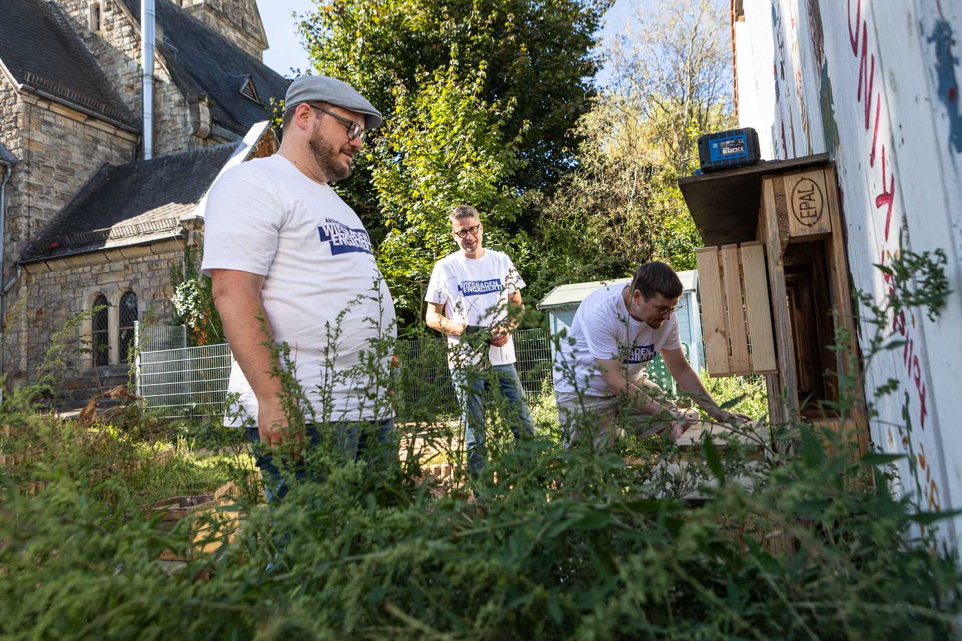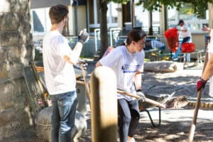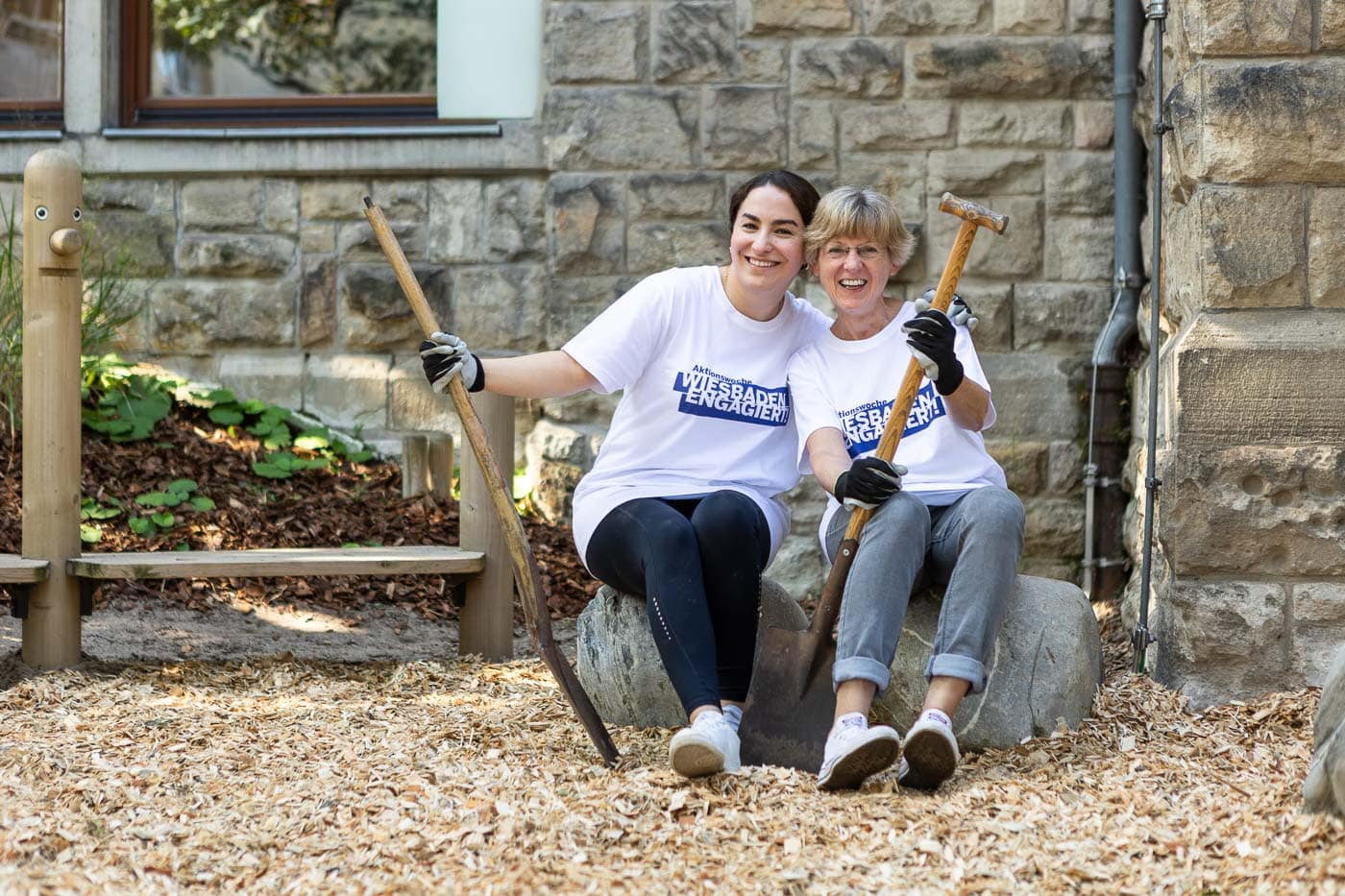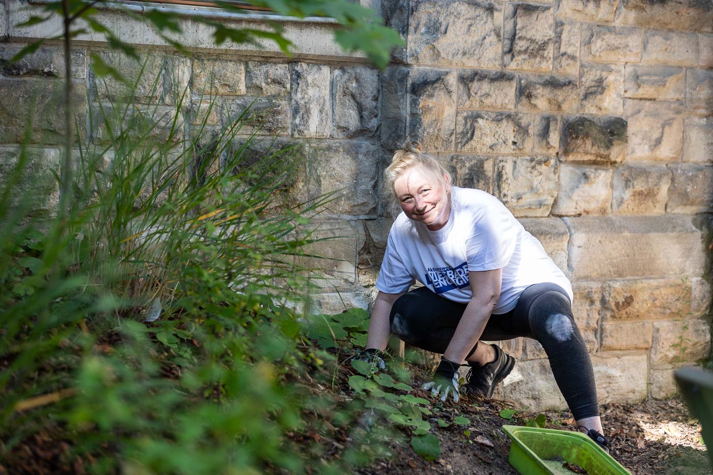 Das Team des Oberbürgermeister-Büros inklusive Oberbürgermeister half mit zahlreichen Schubkarrengängen. Auch die Grünanlagen wurden gepflegt, die Böschung vom Unkraut befreit und neue Bodendecker gepflanzt. Jetzt können die Kinder das Außengelände wieder zum Entspannen und Wohlfühlen nutzen.