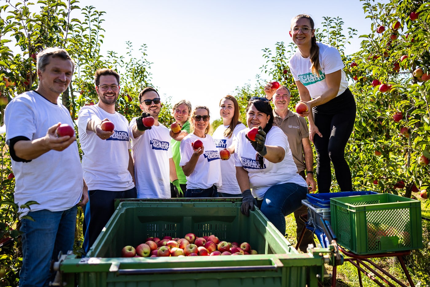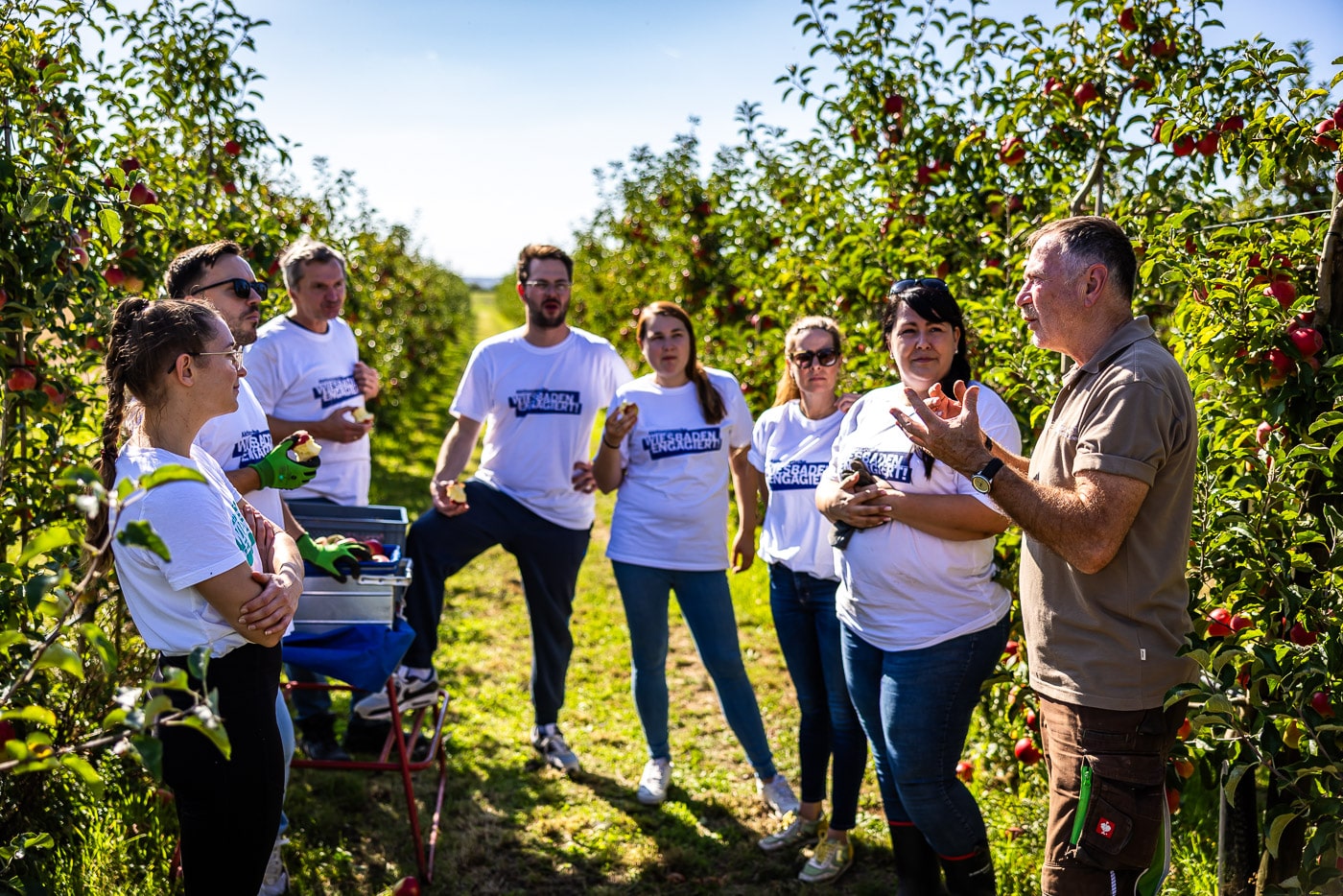 Ein Tag bei der Domäne Mechtildshausen. Zwischen Melkstand und Apfelbaum schafften wir gemeinsam etwas, das bleibt. Es gab verschiedenste Aufgaben, wie Gemüseacker jähten, Kartoffeln oder Äpfel ernten, alte Zäume abbauen, den Melkstand reinigen oder das Silo streichen.