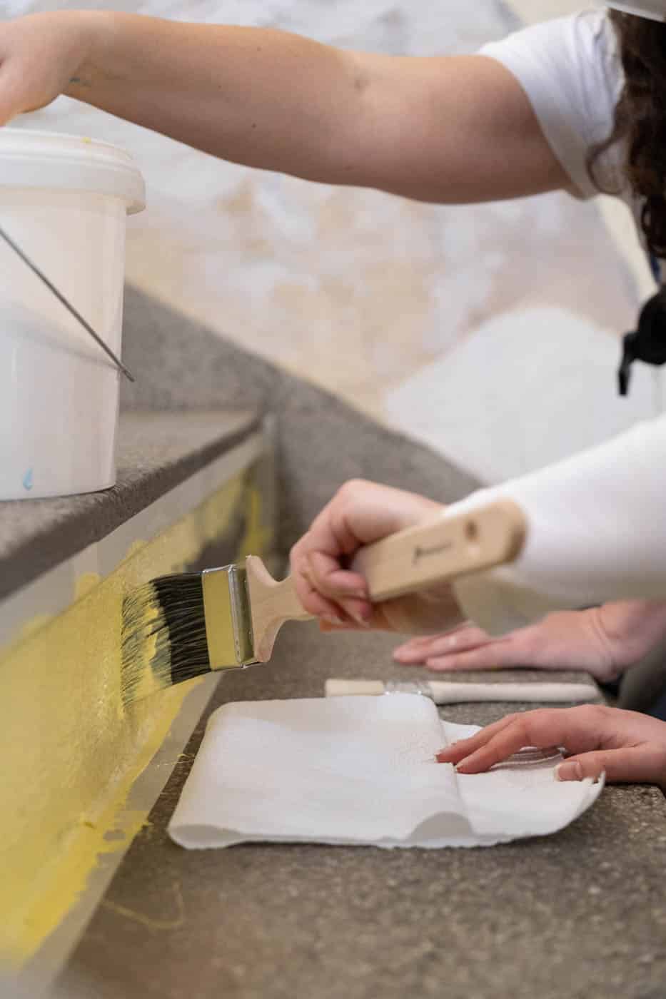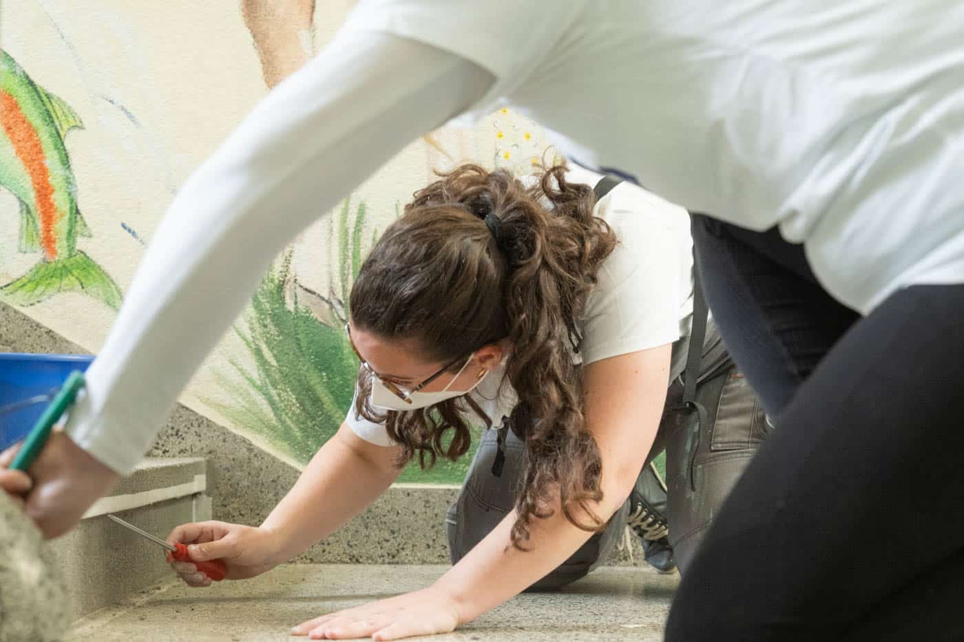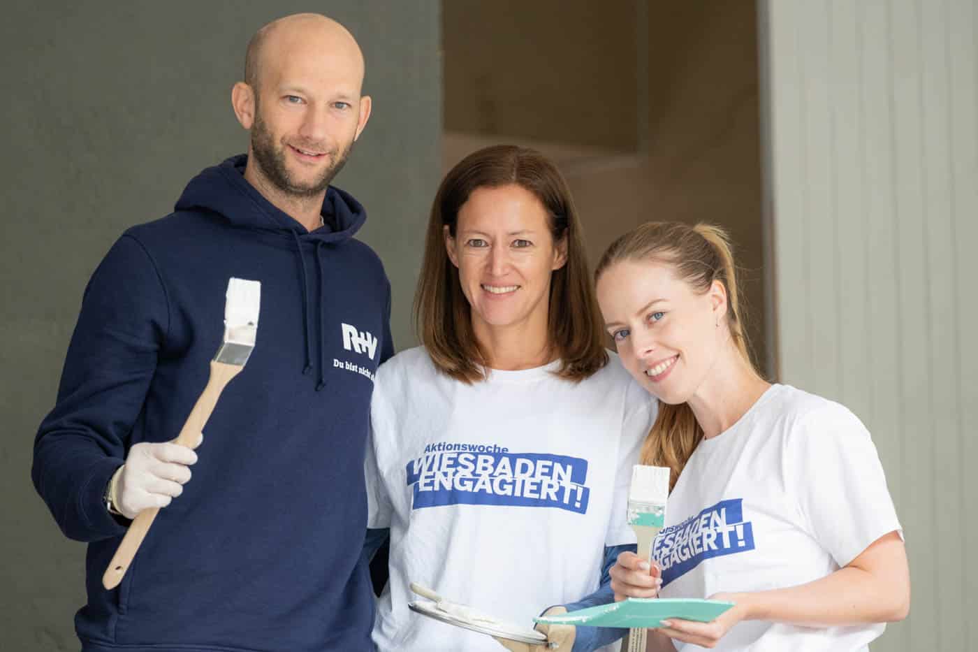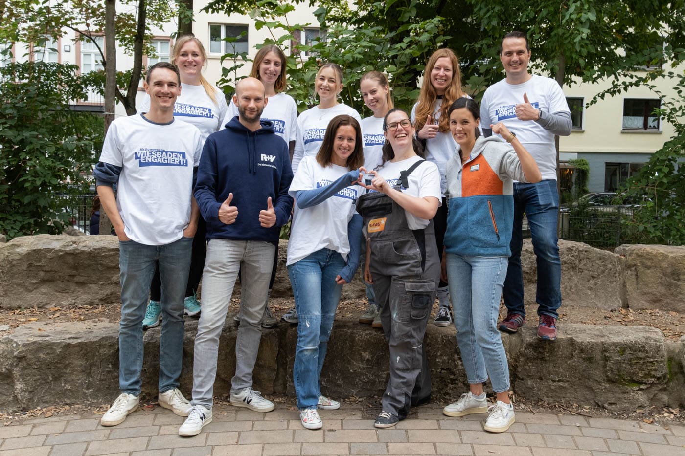 Schulgebäude & Schulhofgestaltung standen in der Grundschule an. Und da war Einiges zu streichen und neu zu bemalen – von den Affirmationssprüchen auf den Treppenstufen bis hin zu Spielfeldern auf dem Schulhof. »Mensch ärger dich nicht!«, Buchstabenschlange oder Hunderterfeld sollten wieder frisch und bunt leuchten. Ein engagiertes Team der R+V Versicherung nahm die Herausforderung an zwei aufeinanderfolgenden Tagen an.