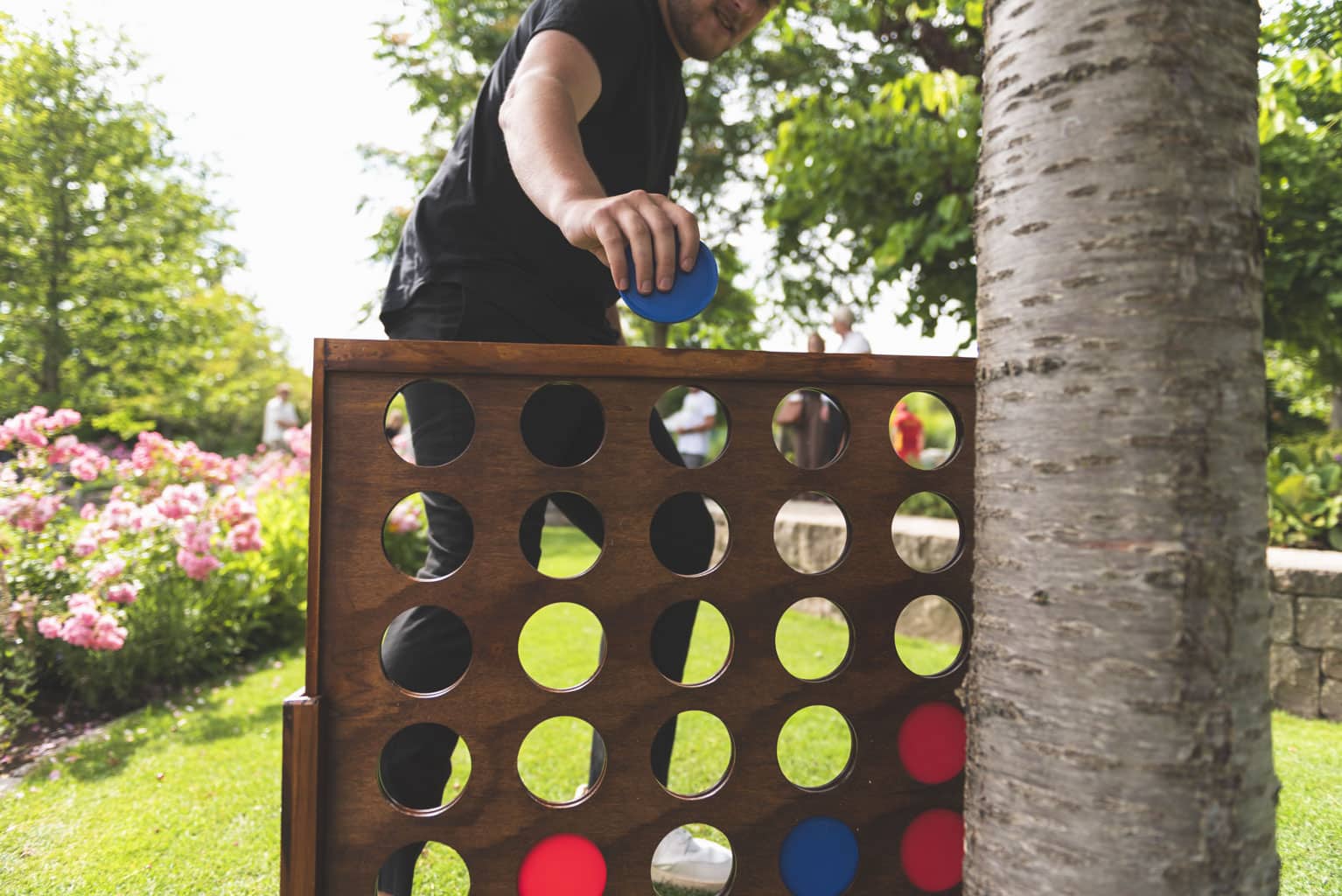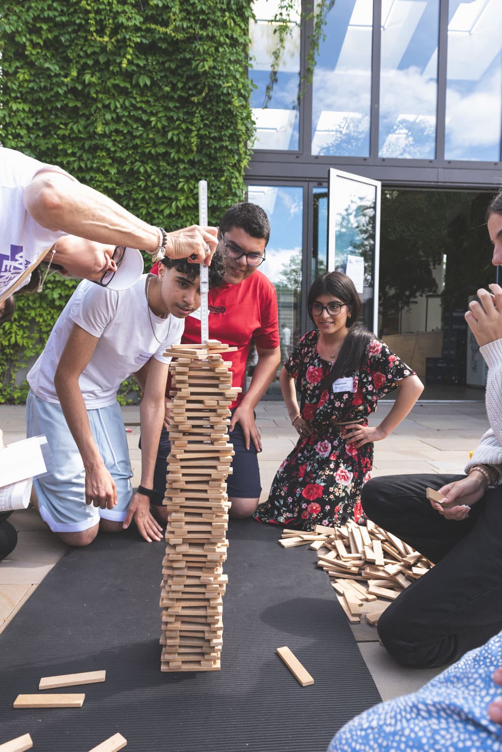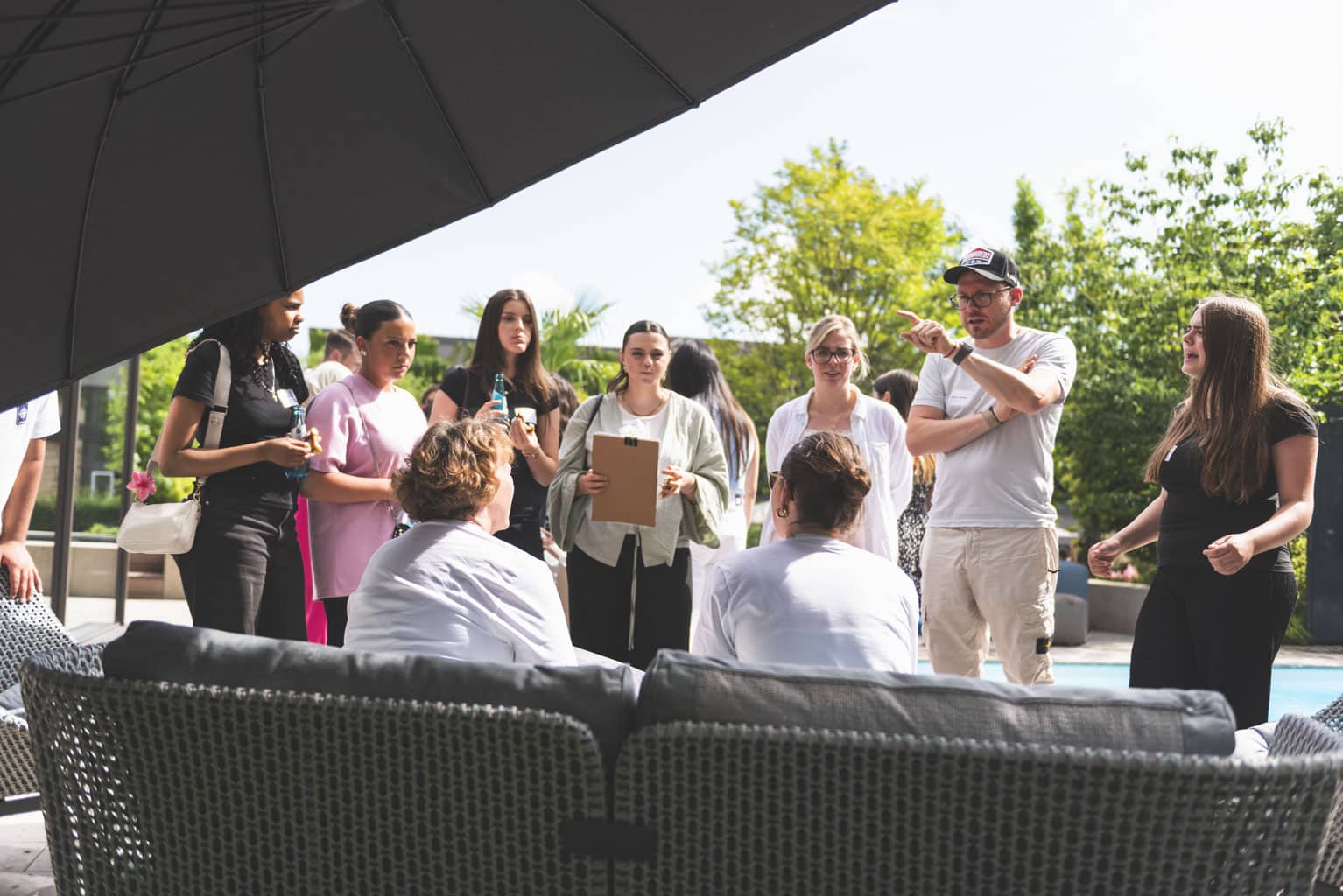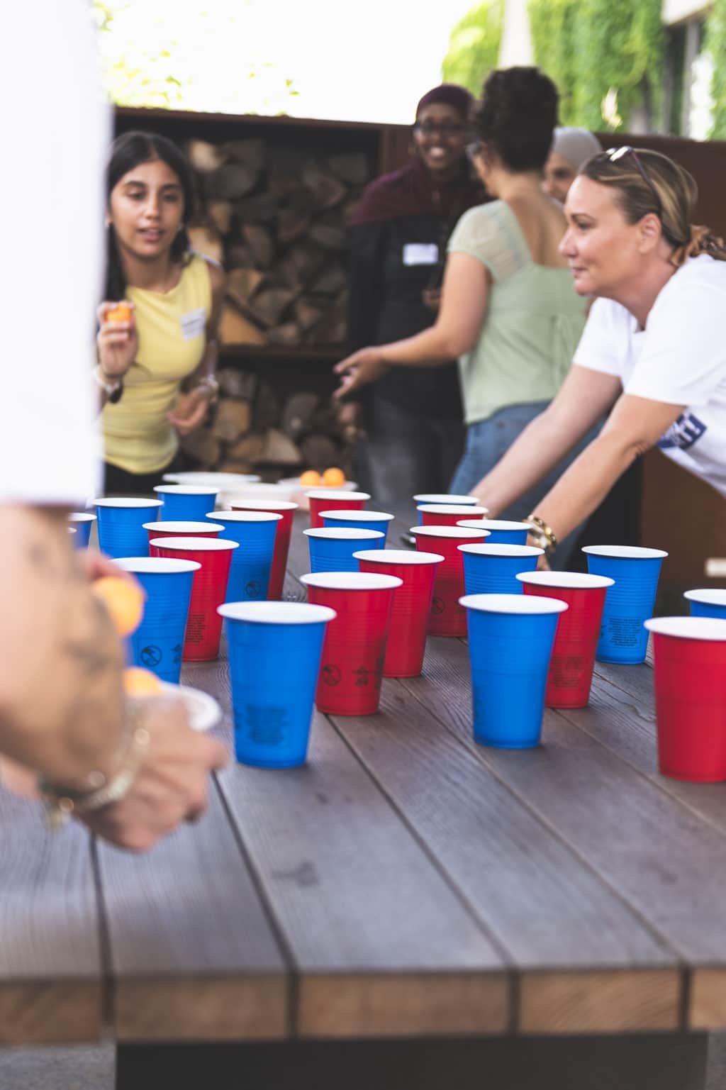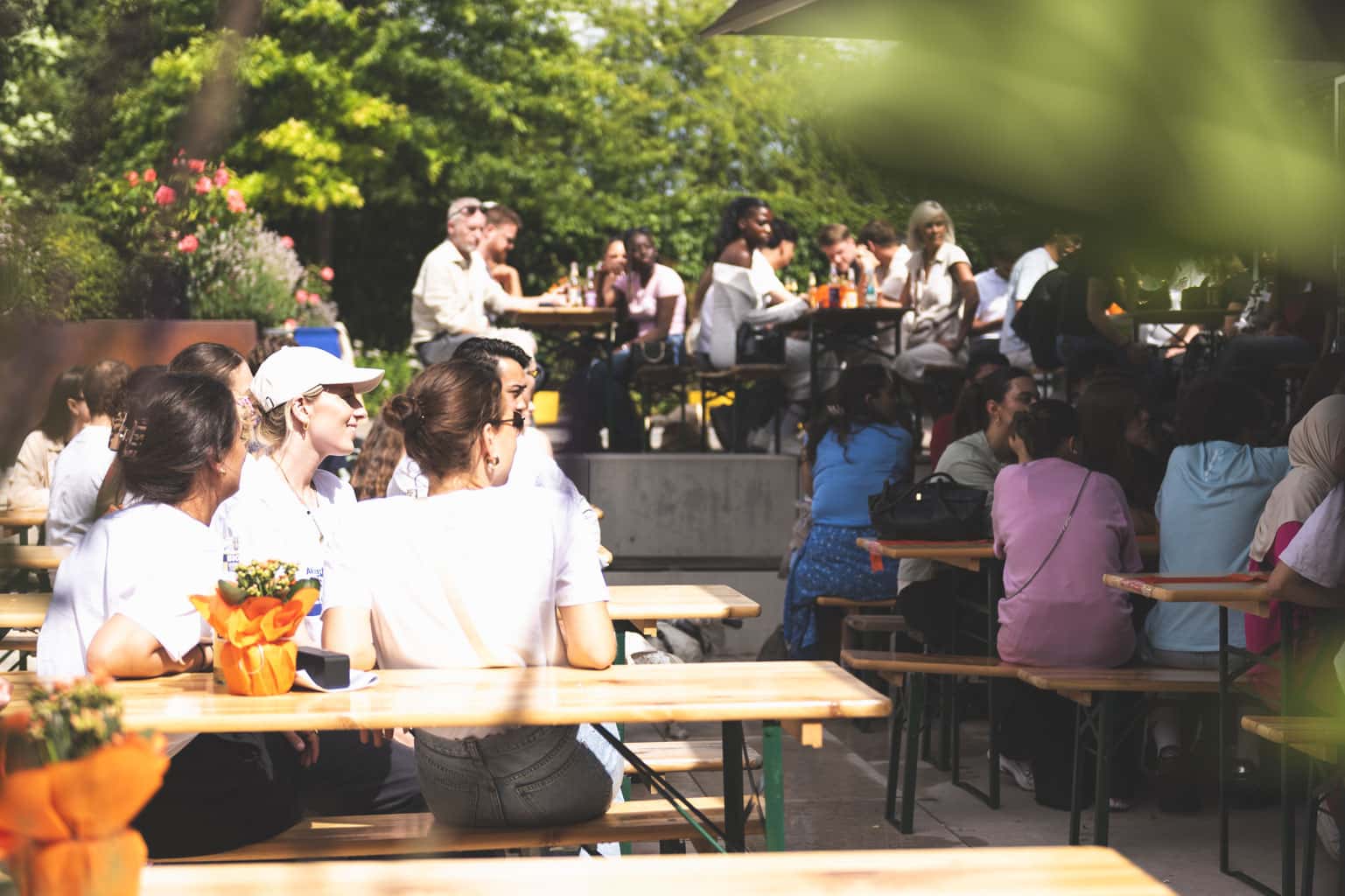 Fast 100 Jugendliche aus allen WiesPaten-Gruppen feierten mit ihren studentischen Lehrkräften und ihren Patinnen und Paten aus 20 Unternehmen ein gemeinsames Sommerfest. Es fand zum wiederholten Male im wunderschönen Ideengarten der Firma Gramenz in Erbenheim statt. Im Mittelpunkt des Fests stand der sogenannte »WiesPaten Wettstreit«, bei dem sich die einzelnen Patenschaften an 10 Spielstationen miteinander maßen. Die engagierten Mitarbeitenden von der R+V Versicherung AG und ctc events halfen bei Auf- und Abbau und sorgten während des Festes für die Betreuung der 10 Spielstationen. Das »Spiel ohne Grenzen« brachte alle in Bewegung und stärkte den Teamgeist.