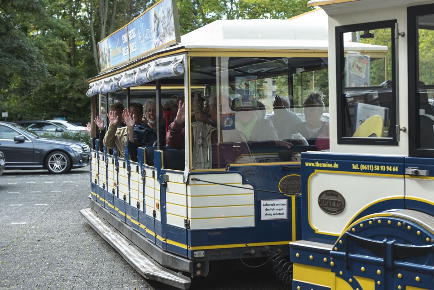 Auf Wunsch vieler älterer Menschen im Schelmengraben haben wir gemeinsam mit unseren Kooperationspartner:innen eine Ausflugstour mit der Thermine organisiert. Vor der Abfahrt wurden liebevoll verpackte Care-Pakete verteilt, anschließend führte uns die ikonische Stadtbahn an Wiesbadener Sehenswürdigkeiten vorbei bis zum Café Leichtweiß, wo Kaffee und Kuchen auf die Teilnehmer:innen warteten. Die Thermine brachten alle sicher zurück in den Schelmengraben, gefolgt von einem kleinen Sektempfang zum gemeinsamen Ausklang.